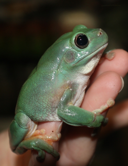 A little albino hognose snake that's living with us for a while. He's actually quite small but very affectionate. We are currently tryin to find his owner.